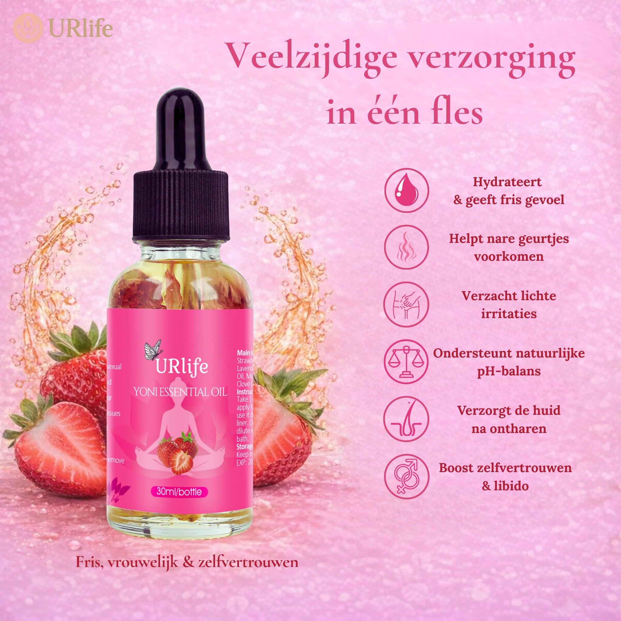 - 1× URlife® Yoni Olie Aardbei (30 ml)